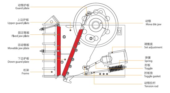 顎式破碎機廣泛運用于礦山、冶煉、建材、公路、鐵路、水利和化工等行業中各種礦石與大塊物料的中等粒度破碎。作為在礦山,建材和基建中不可缺少的一部分,顎式破碎機的重要性是毋庸置疑的。但是,顎式破碎機的軸承更換、檢修起來相當的麻煩,云南中天礦山機械制造有限公司根據多年的摸索總結,找到了下述比較簡單快捷的更換方法。我們采用的檢修方法是在機架上直接拆除兩邊的飛輪。