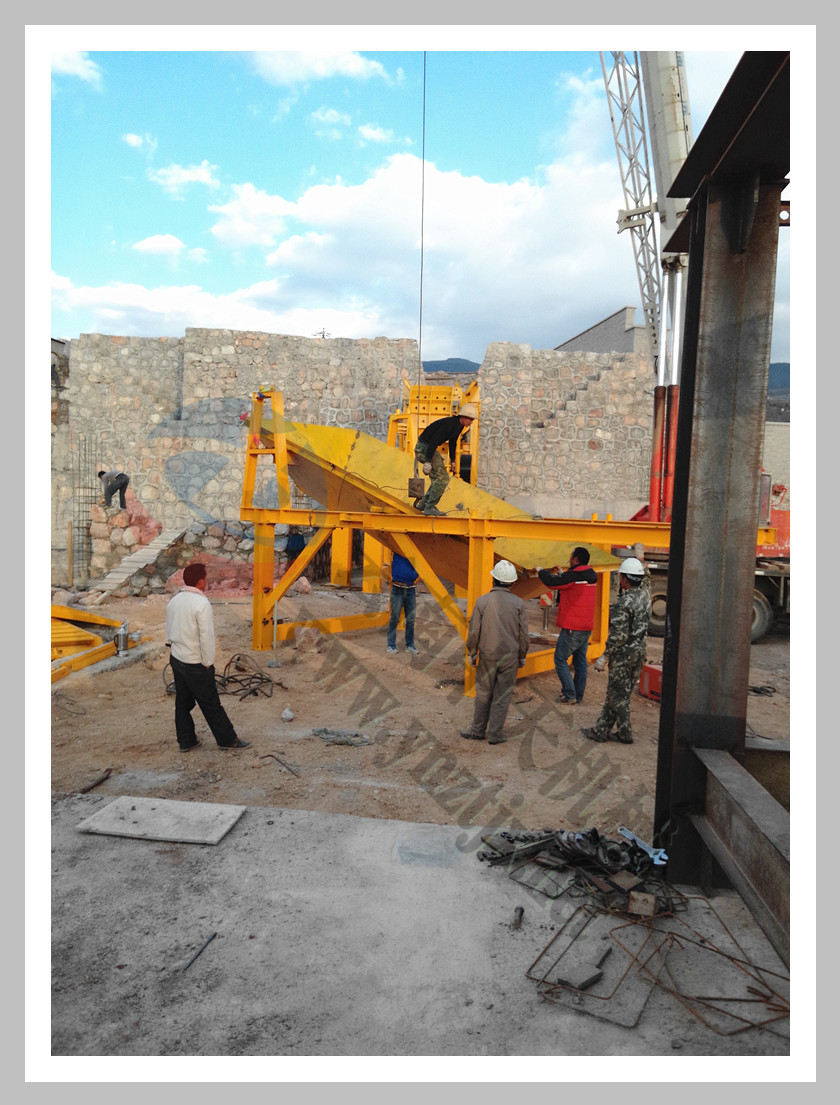 | 安裝過程中的大梭槽及給料機(jī) |